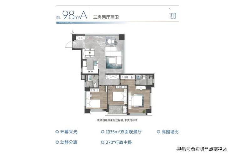 < 左右滑动查看 98㎡A户型图、样板间图>