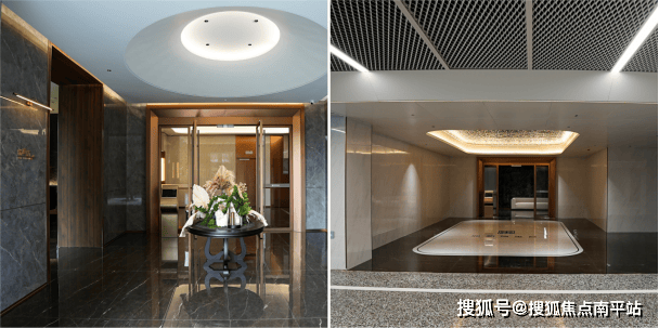 艺术车库:以铝拉网板+铝方通吊顶、特级岩板墙柱等打造,搭配艺术灯光与科学指引,下车即享高端礼遇。