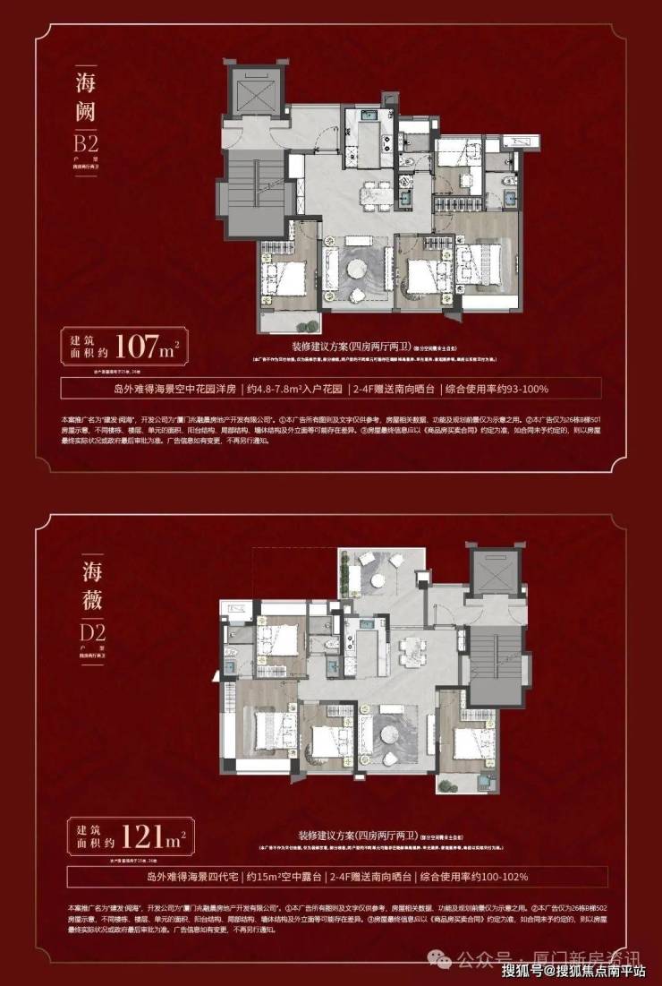 规划2栋高层与7栋洋房的纯四房产品89-125㎡户型,高层最大楼间距达56米,约2.08容积率。综合使用率做到约87-108%,洋房户户入户花园,2-4层还额外赠送晒台!120m²以上的第四代住宅高层和洋房更是配置了最大约17m²空中庭院!