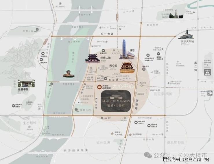 4.择址天心中芯 三千年长沙菁华处:三千年主城根基,一个天心区,半部长沙史。项目落址天心中芯,长沙核心二环内孤品地段,城市贵脉之地,城芯丰盛资源云集。