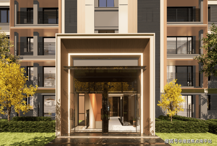 色彩选择上, 莫兰迪暖色系倾洒立面,仿佛将阳光织成披肩,彰显整体建筑的雅致和贵气。