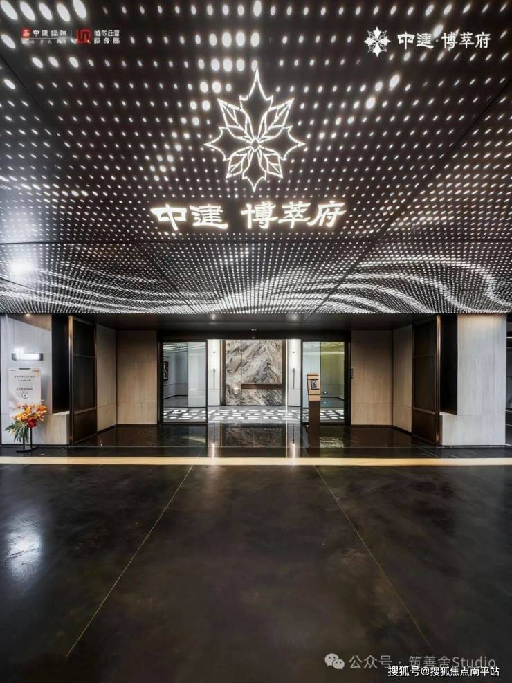 中建博萃府地下车库光厅,采用“银河流光星空顶”的璀璨设计,令人眼前一亮。约38㎡的“归家光厅”内,搭配顶部近27㎡的透光云石,彻底颠覆传统地下空间的沉闷感受,带来前所未有的开阔与明亮。