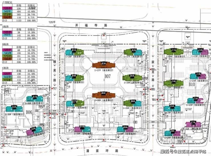 A地块3栋,B地块10栋,C地块8栋,显然B地块是最优质的,项目的会所、下沉庭院都设置在B地块。