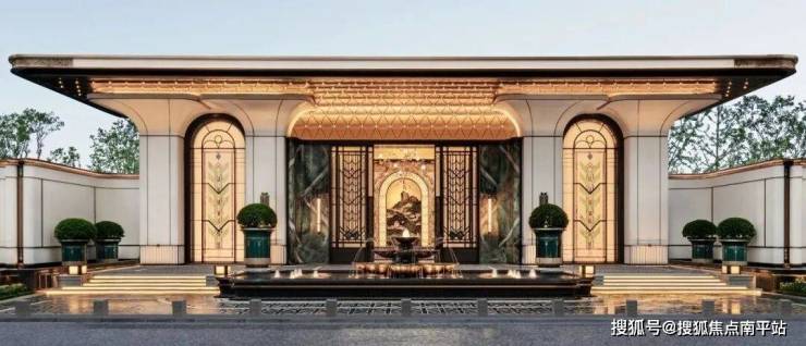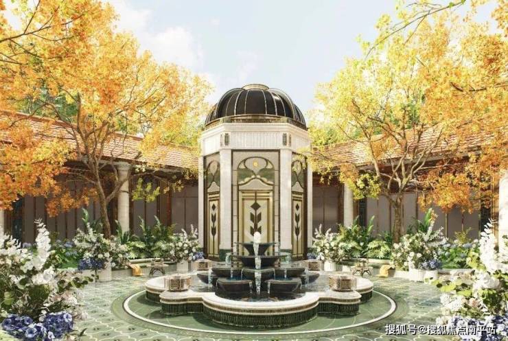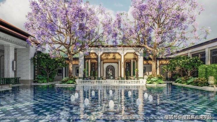 采用建筑化景观设计手法,以游廊、亭台、水景等元素串联多个庭院,形成层层嵌套的空间叙事,营造“景观宫殿化”的奢华体验。