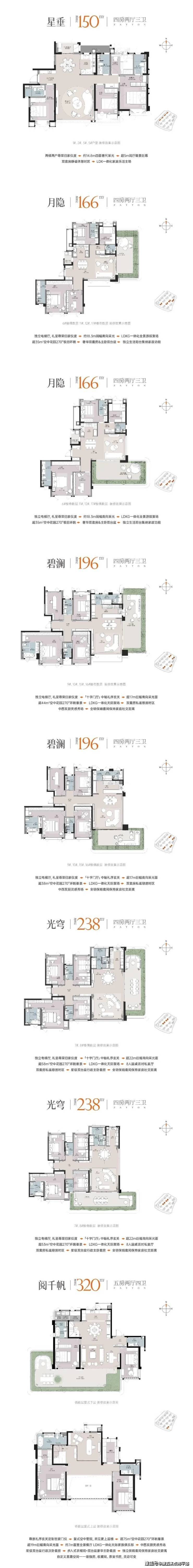 ·产品:建面约150-320㎡空中花园平阔墅