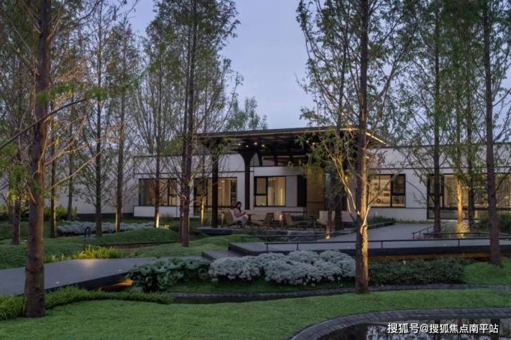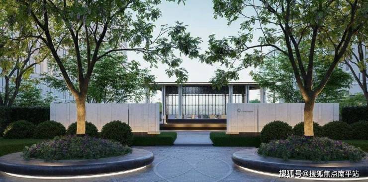 摩登海派与现代简约在此碰撞融合,打造出别具一格的园林庭院。对称式园林设计,严谨有序而不失灵动,景观轴东西向布局,长190米,通过竖向设计与空间序列形成三重体验层级。西侧起始段设半开放下沉式入口庭院,以渐变围合界面过渡城市与住区空间,经社区大堂及垂直电梯转入大区园林。大区园林以法式庄园为蓝本,通过多层次植物配置与规则自然结合的布局,塑造静奢景观气质。末端再次下沉,打造社区引力客厅连接林下秘境花园,以功能分区实现赏花、休憩等复合功能,形成半私密交流空间,达成景观功能与体验统一。