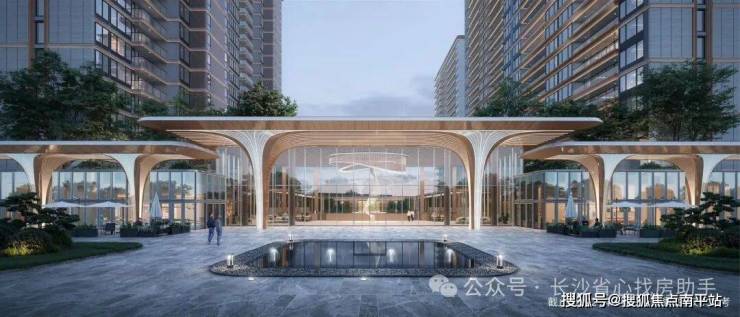 1、奢配浮岛森林:浮岛森林下沉庭院,灵感来自于长沙岳麓之秋,归家水景复刻岳麓之秋的起伏节奏,演绎万山红遍,同时具备多元社交功能——待客会友、休息会客及立体看台空间。