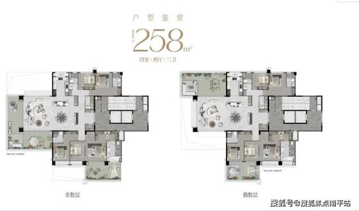 >将星级酒店套房的完整功能搬进主卧,例如建面约258㎡户型,主卧实现超大露台+独立衣帽间/化妆间+酒店式卫浴,并拥有两间卧室,既解决了夫妻作息不同的困扰,又不会过分疏离……