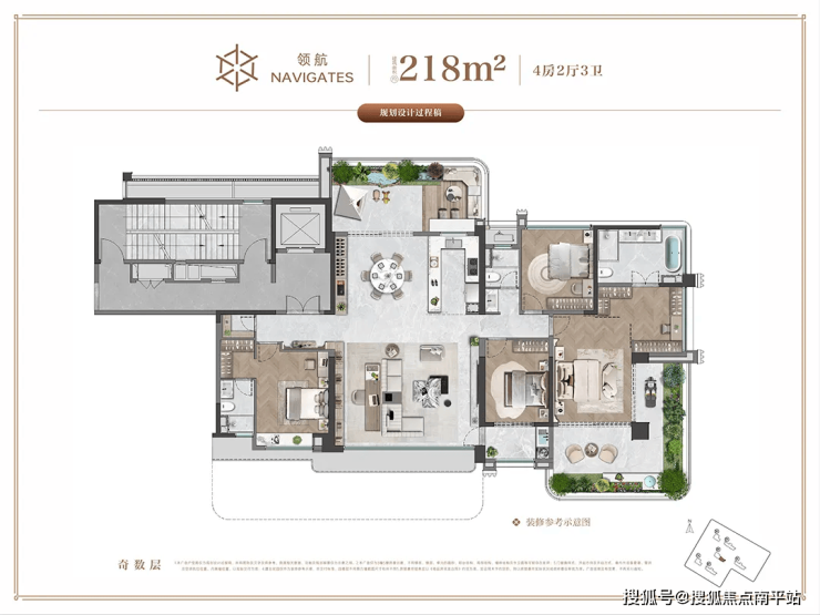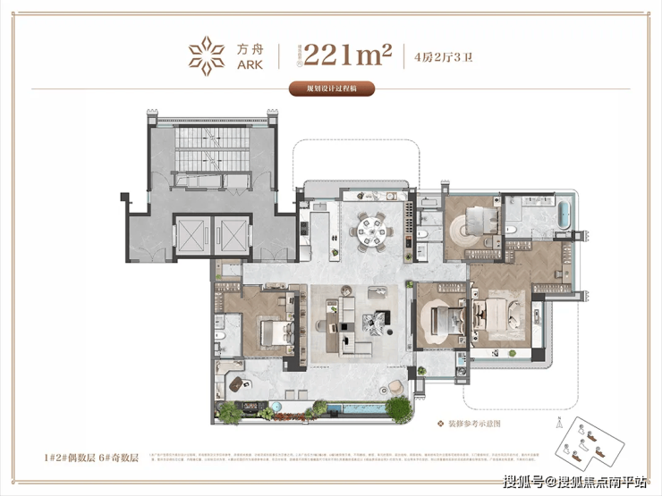 ② 东海首座纯粹四代天际平墅,项目规划6栋高层 全系218㎡起步的四代住宅产品,全盘仅224套,高阶圈层纯粹。