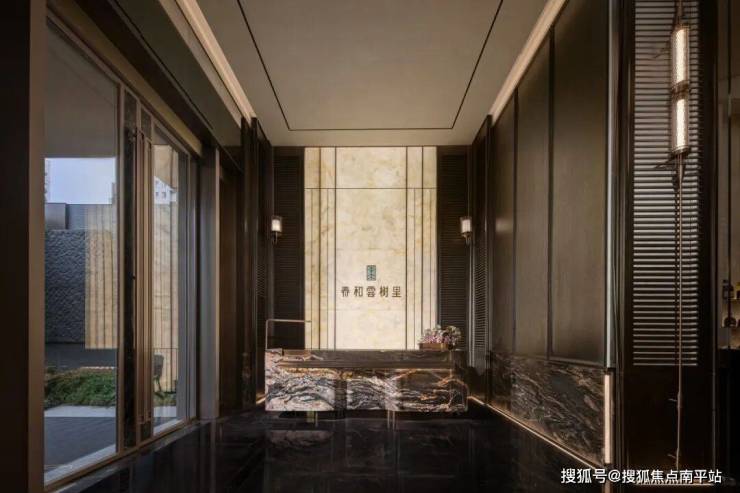以挑高、对称布局定义“序厅”身份,一入厅便立住庄重的空间氛围,水纹玻璃壁灯借自身自然纹理晕出柔润光芒,似嵌入空间的“自然水晶”,让低调高贵的氛围更显细腻温润。借大连复州古城元素的解构重组,将建筑美学的序列韵律融入接待大堂的造型细节中,铺垫出“文明觉醒”的文化基底。