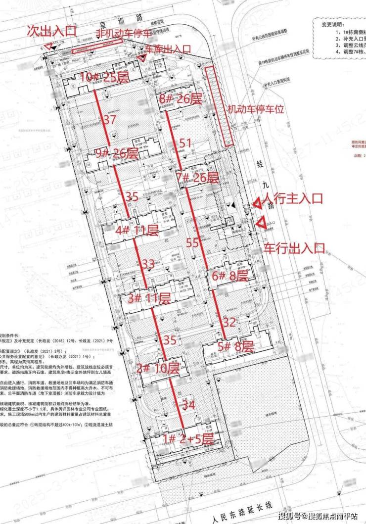 主要出入口集约设置在东侧,人行与车行流线肯定会有所交杂。但是对于物业管理,是比较有利的。