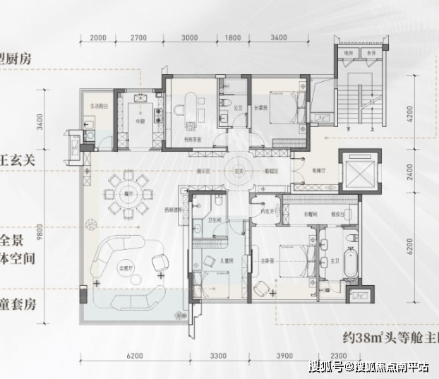 168户型:边厅户型,整个户型的通透性和面宽有所改善。有独立的生活阳台,但是占据了厨房的面宽,导致厨房进深过长,并不好用。入户门正对着室外,照壁的位置需要考量。主卧虽然3个功能空间分开设置,但是要从衣帽间再进入卫生间,这点也不够完美。