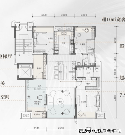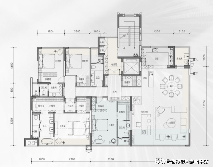 225户型:1梯1户。从户型面积来说并不大,有一定性价比。相比169户型,布局明显改善,户型以楼梯间为中轴,动静分区。没有明显短板。