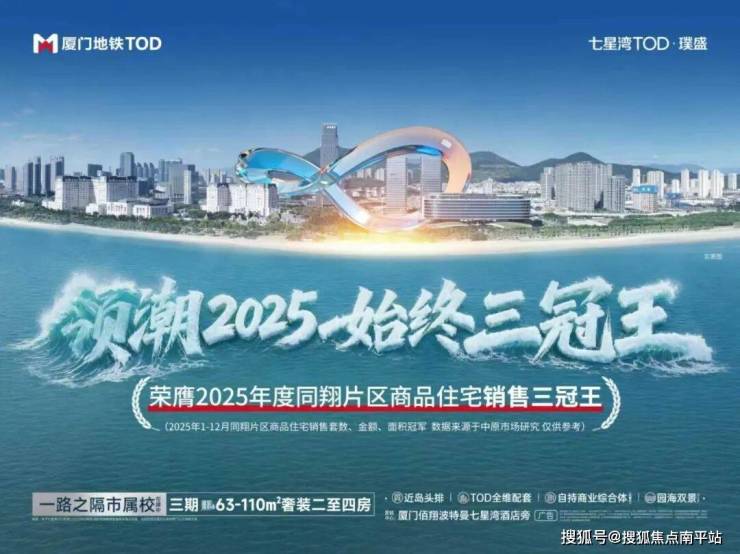 在岛外核心区,一个超级大城正悄然创造销售奇迹。它开盘至今售出1700+套,霸榜2025年度同翔片区销售三冠王,12月份三期推出也是单月全市销售三冠王(数据来源于中原市场研究),三年内迅速成长为集 “地铁+海景+沙滩+酒店+产业+商业+学校” 于一体的新城核芯。它用实实在在的销量,证明了什么是普通人用钱投票的“好房子”。 它就是环东海域的骄子【七星湾TOD】。