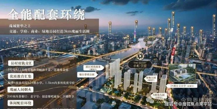 全维路网—临江大道、花城大道、过江隧道连接珠金琶;便捷地铁—员村站上盖,5号线三站珠江新城站,11号线1站即达琶洲;