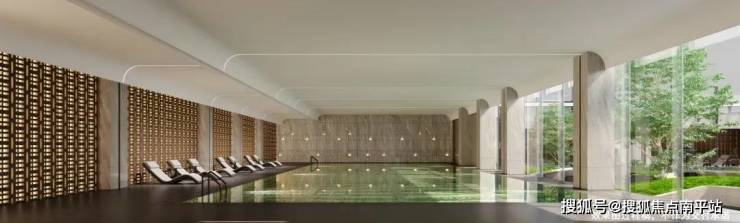 结合下沉庭院,项目打造约1000㎡鎏金地下会所,包含室内恒温泳池、健身房、品酒室等。此外,项目所有栋楼首层全架空,规划了会客、茶室、私宴等功能。