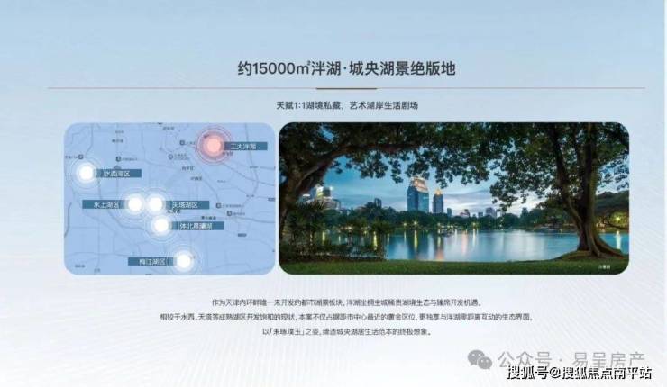城央稀缺湖景,内环畔最后一个未开发的都市湖景板块,3.6万方泮湖公园,缔造城央湖居生活范本。