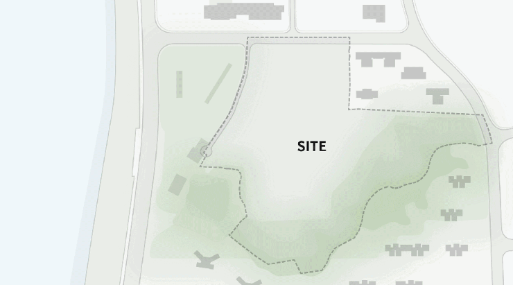 常见的场地布局方式往往使江景集中于少数的沿江户型,形成所谓“一线看江景,二线看花园”的格局,而我们通过AI模拟与参数化演算,将塔楼整体 西偏南旋转30° ,配合错位布置与局部避让,以减少相互遮挡、最大化每户对江面的开口;同时在北侧受日照限高约束时 主动取消中心楼栋 ,协调抬升周边楼栋高度,由此 置换出约1万㎡的中央超级花园