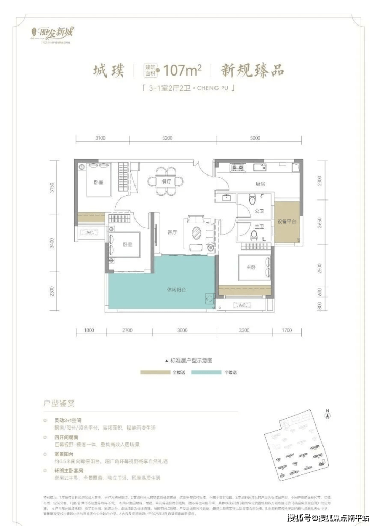 加赠送得房率高达93%,106㎡做到3+1户型设计,全屋四开间朝南,南向6.5米转角阳台设计,尽揽园林风光。