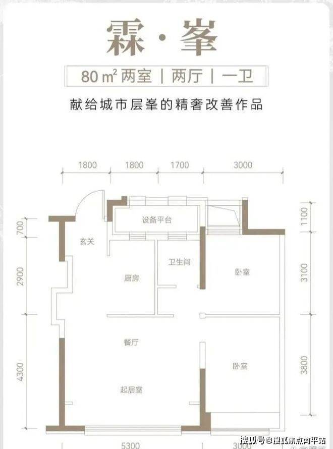 小高层2号楼:18层到顶,中户80㎡两居室,边户103㎡三居室,均价1.8万/平米