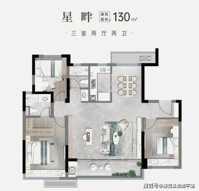 功能分区:独立电梯厅、南北通透宽厅(如130㎡户型6.25米横厅),适合多代同堂。