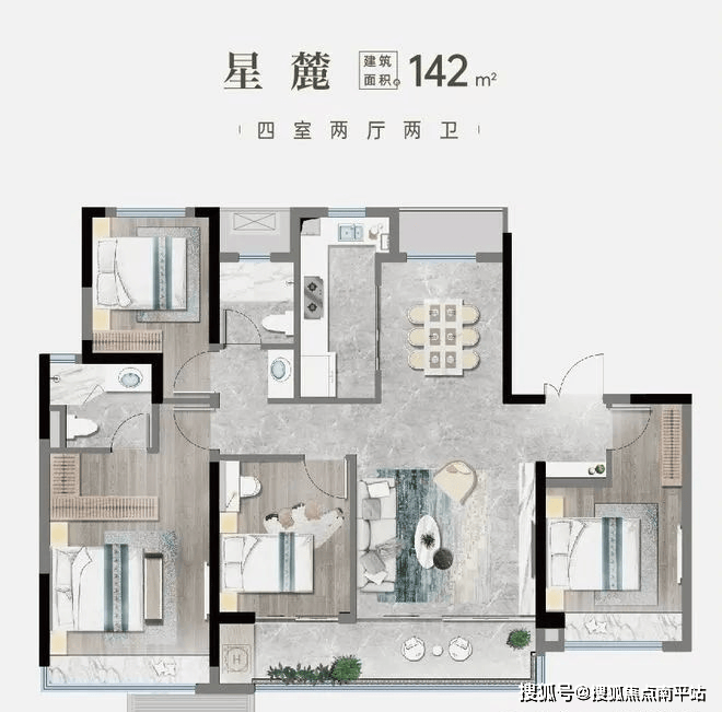 户型创新:全南向落地窗设计(如142㎡户型6.9米面宽),部分户型赠送设备平台(约5-8㎡)。