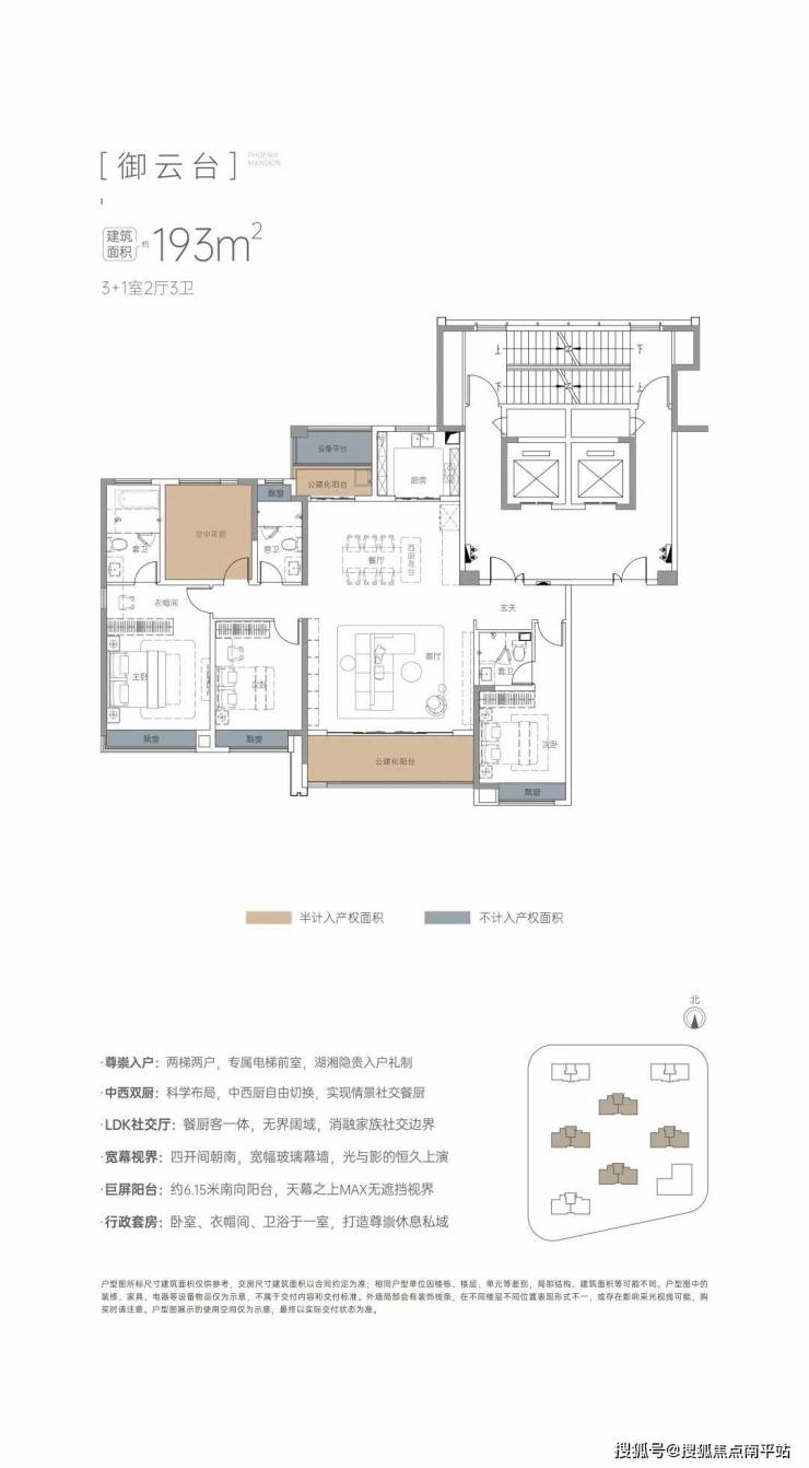 约193㎡天幕平层:中西双厨、LDK社交厅、4开间朝南、约6.15米景观阳台、双套房主卧。