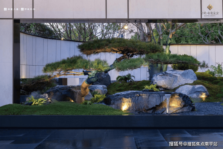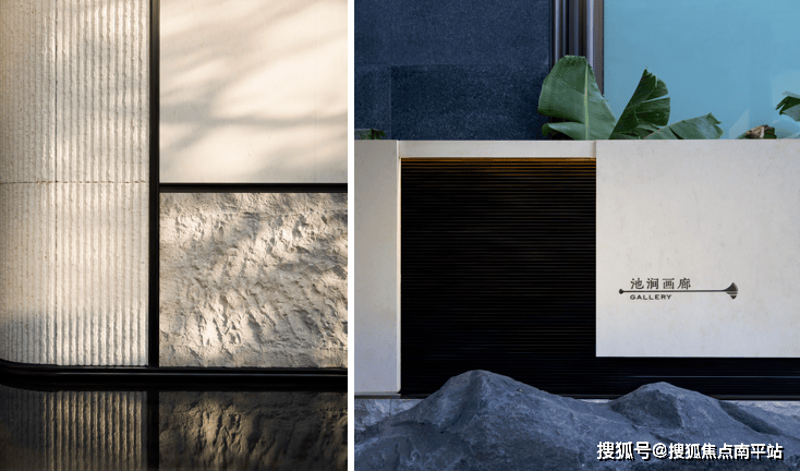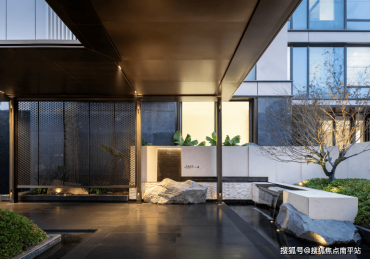 西门主入口进来后的“山水框景”,以及会所的小景,门庭,水景,均运用了大量的维纳多奢石,以白色表达意境,将空间的想象感去最可能的拉伸。