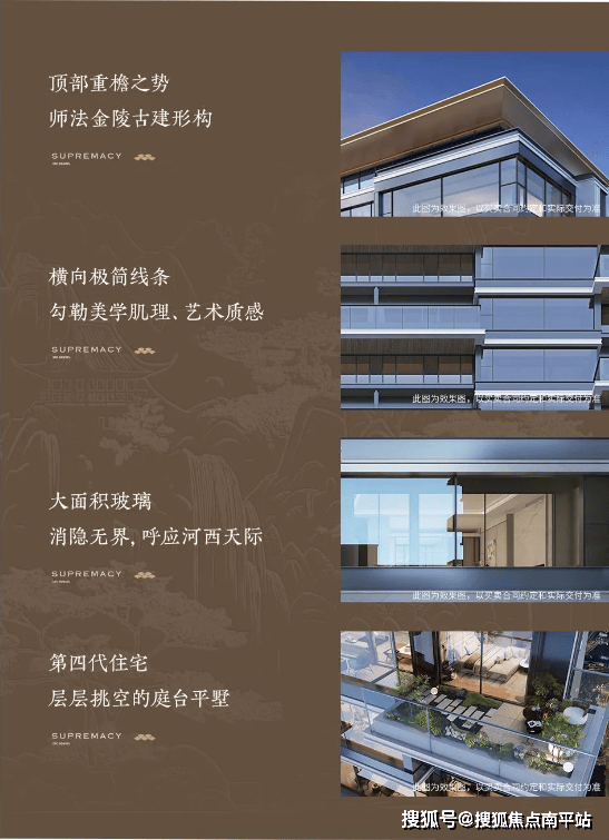 作为河西首批面世的第四代住宅之一,方案经过多轮推敲原创出“重檐为顶+水晶镜幕”的全新建筑美学,“中而西古而新”的城市艺术封面。