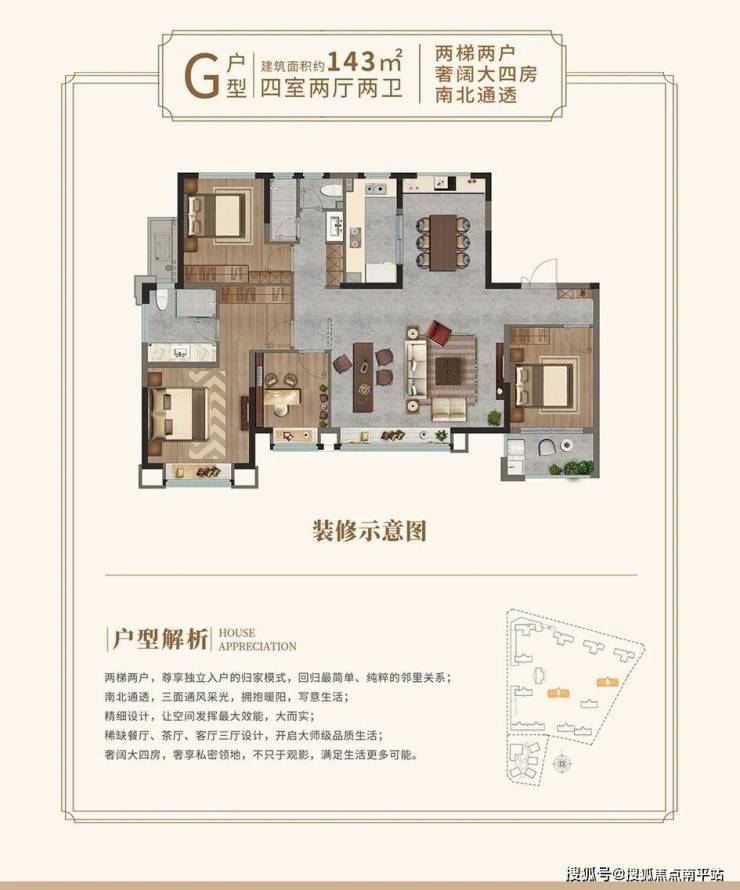 【户型面积】:建面约106-143㎡3-4房
