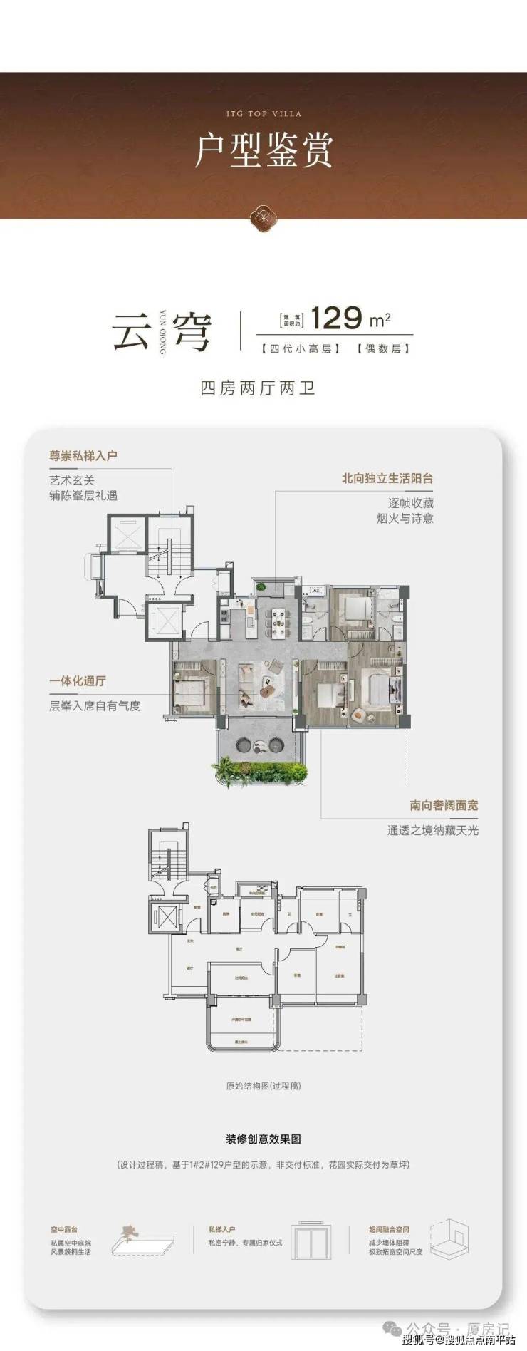 •有129-139㎡四代小高层,174㎡复式空中墅,188㎡大平层,172-198㎡6层院墅,189-198㎡4层院墅,266㎡合院等户型;除少量3套188平大平层和8套266平独栋别墅毛坯交付外,其余均精装修交付;