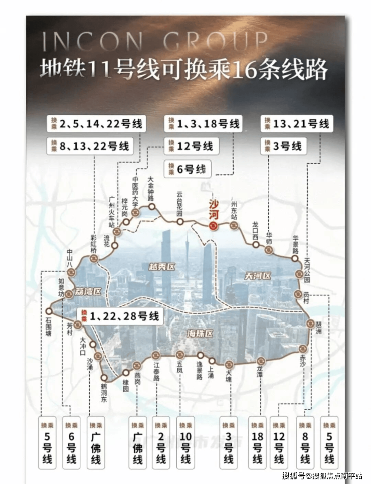 广州设计的首条大环线——地铁11号线,也经过这里。而广州11号线描绘的,是广州的“核心通勤圈”、“核心商业圈”、“核心资产圈”。
