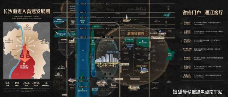 省府主城核心,总投资约316亿元,定位为“省府门户,湘江客厅”,坐享约2.76公里滨江岸线,约70%省级行政机构,60余家重点企业总部林立,约70亿奥体中心,约48亿国家医学中心等省级重点项目环伺,区域发展进入高速发展期。