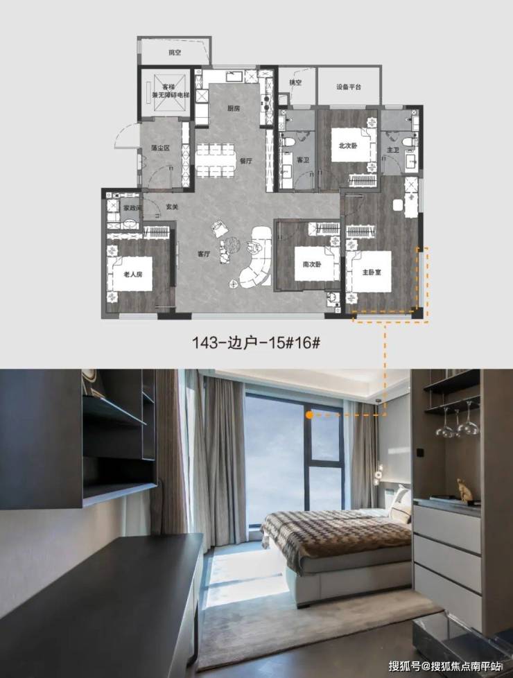 君安143平米边户户型主卧创新采用270°转角落地窗设计,极大优化采光通风,显著提升居住舒适度与景观视野。此方案需克服更多设计与施工挑战(如拐角窗去柱化),实质性地提升了主卧赠送空间利用率,实现“无界”景观视野,让阳光与清风恣意流淌。
