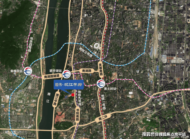 观江学府位于长沙市天心区南湖新城核心区,书院路与南沿路交汇处,项目周边交通便捷