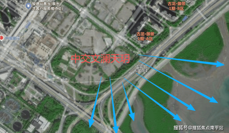 从卫星图可以看出来,文澜天玥所处位置直面海湾,景观一览无遗,是集美东部新城最优越的瞰海宅地。