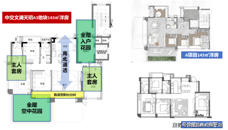 目前岛外做这个面积段四代宅的项目非常少,文澜天玥143㎡洋房在竞品四代宅户型基础上,不仅坚持了南北通透+宽厅的舒适居住体验,而且创造性地设计了带独立卫生间的双主人套房。