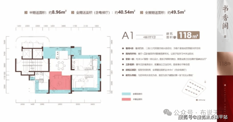 建面约118㎡户型是堪称“楼王”级户型!得房率达112%!全屋赠送面积达49.5㎡!