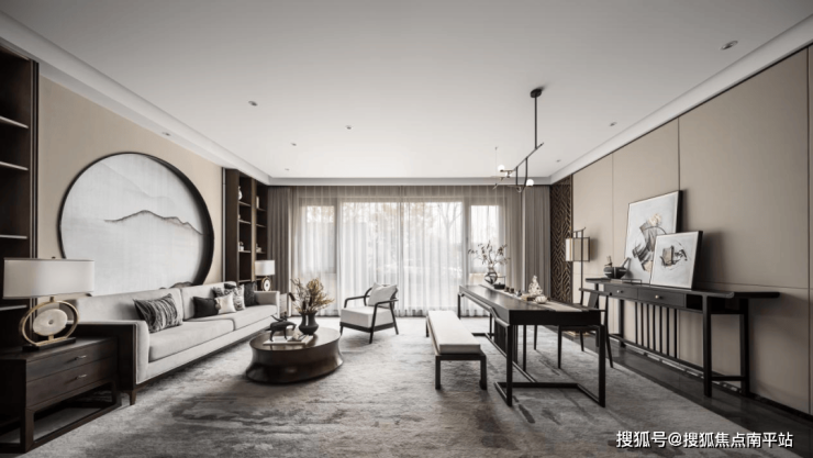 项目建筑设计以新中式风格为主,沉稳大气的深棕+灰色外立面,超大窗墙比,居住体验感拉满。