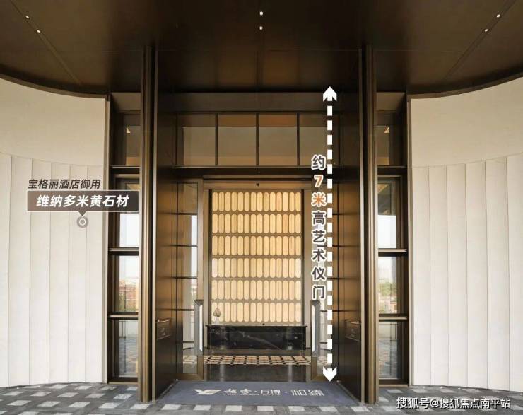 一进大门,整个入户大堂以宝格丽酒店设计风格为灵感,每一个细节都透出映射质感。约7米高的艺术移门辅以奢石弧形墙面,以强烈的仪式感,勾勒通往越秀·万博和臻的“玄关”。