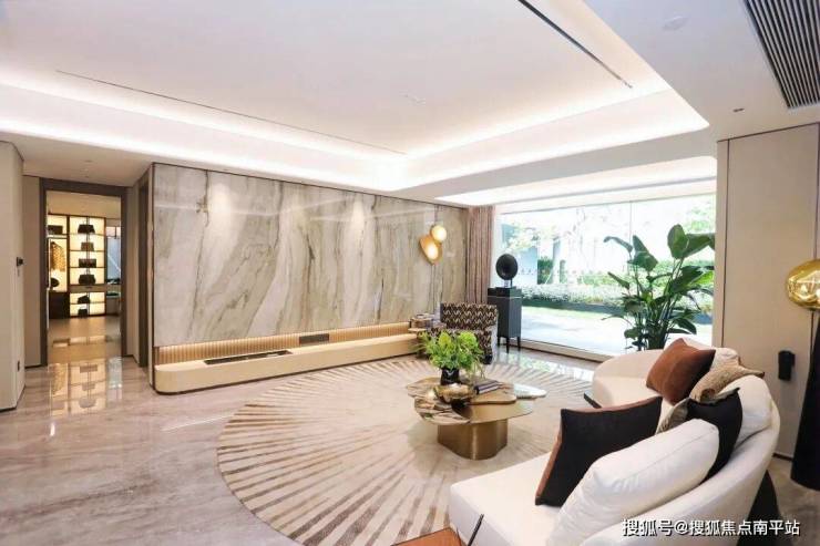二进 “南洋海派”高奢酒店归家大堂,往常仅用于豪宅室内装饰的奢石,被大手笔地安在了越秀·万博和臻的公区,在细节中拉满了隐奢的生活格调。
