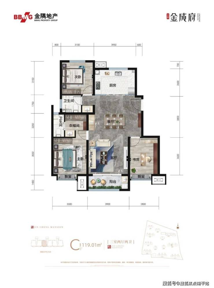 119.01㎡的户型,进门就是餐客厅连着阳台,地方宽敞,一家人聚着看电视,或者来客人招待都合适。厨房就在餐厅边上,洗菜、切菜、炒菜,做完马上就能端上桌。主卧带独立卫生间和飘窗,自己住得舒服还私密;另外的次卧和书房分开,书房要是家里添了小孩,改成儿童房也方便。卫生间部分地方能做成干湿分离,早上洗漱不用抢。