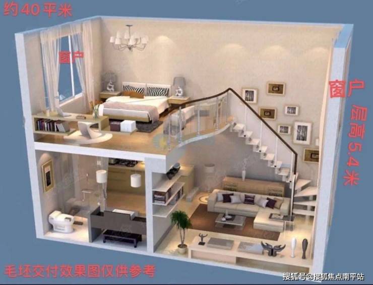 约40-60㎡,层高5.4米