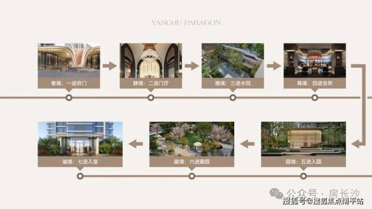打造七进归家仪制 ,整个小区从繁华到静谧,七重空间层层递进;百米迎宾界面沉淀喧嚣,挑空门厅舒展心境。