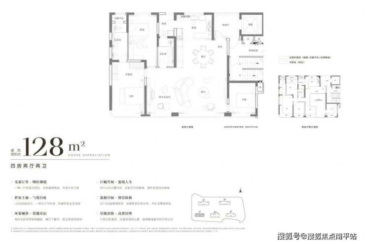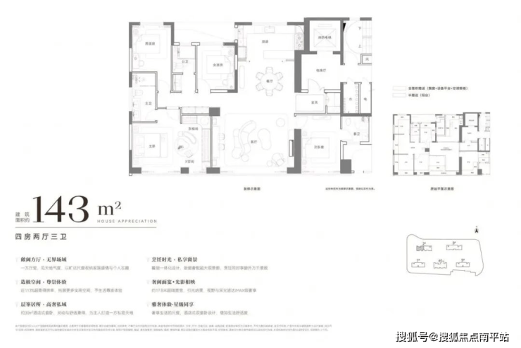 大户型奢配独立电梯厅,有的户型赠送面积可达约68㎡。