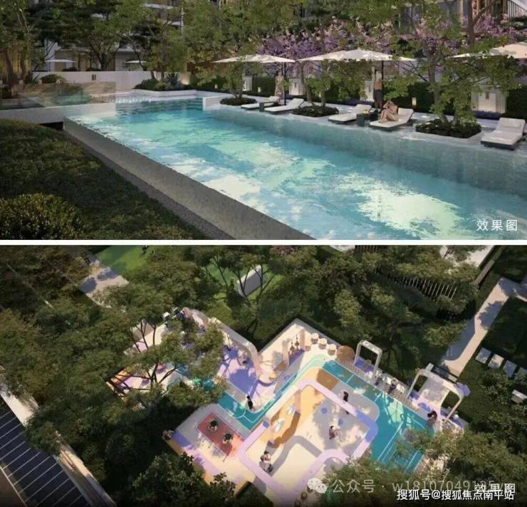 项目规划“一芯·全景聚场”,意图打造一个功能复合的活力芯。其中设计了包括度假泳池、热力营地、口袋花园、活力剧场等主题空间,旨在承载从家庭休闲到社交互动的全龄段活动,让社区成为延伸的 “生活造趣场”。