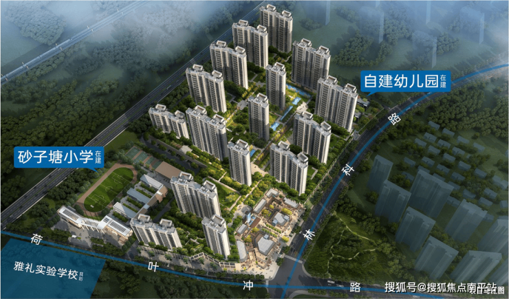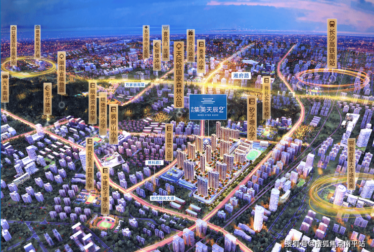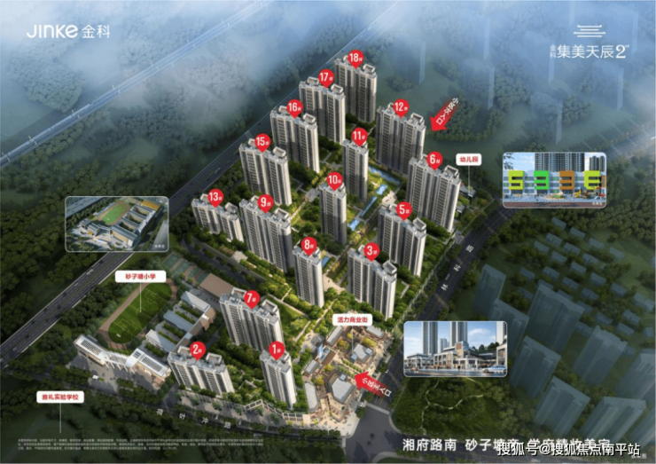 项目位处长沙南城天际岭板块,省植物园东,林科路(在建)旁,总建筑面积约50万方,整体因地制宜采用台地住区形式,楼间距最大可达236米,规划有约1万方三层退台式商业街区、36班砂子塘公立小学、18班幼儿园以及16栋新亚洲风尚建筑。目前项目一期已部分交付,主推二期建面约111-132㎡精妆学府美宅,作为长沙第一块限价地,随着周边项目二手房、毛坯新房价格破万,已经成为优居南城性价比值选。