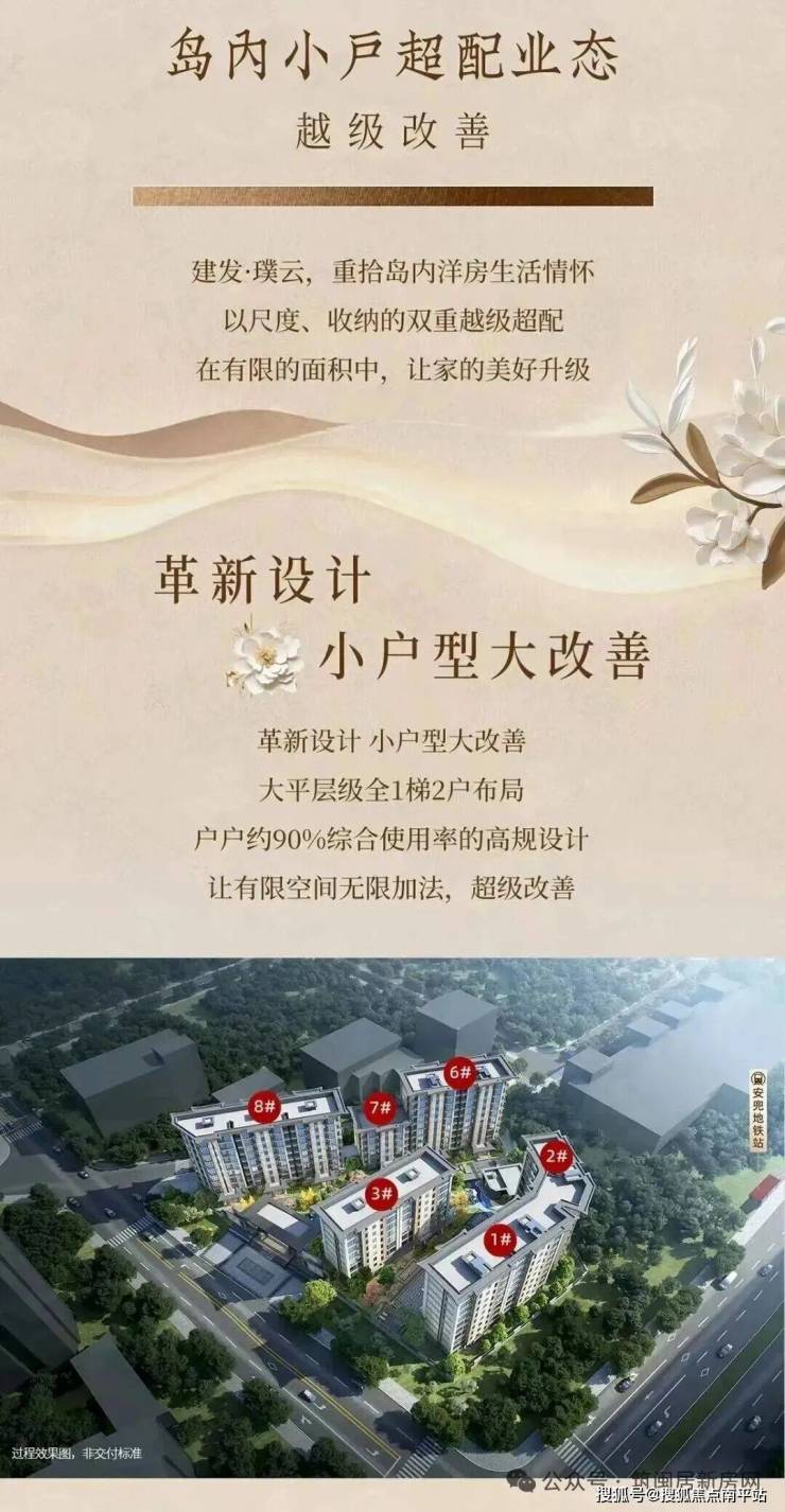 全系1梯2户低密纯洋房+小户型,南北朝向,全系90%以上的得房率,岛内首创万象收纳系统,同时规划架空层泛会所+空中花园。楼间距最大近40 米,楼高与楼距基本 1:1,正午的阳光能洒满客厅,住在建发璞云,日常享受阳光与清风相伴的惬意。