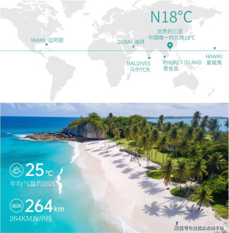 三亚,享誉世界的北纬18°度假天堂,年均气温25°C,空气负氧离子浓度为 3769 个/cm³,大气环境质量为中国排名第一,被联合国誉为“世界上最适合人类居住的城市之一”。