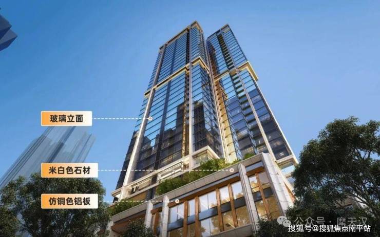 项目外立面则是采用全玻璃幕墙设计,配合航空级仿铜色铝板、米白色石材,打造高端外立面,以超百米地标,融入珠江新城CBD天际线。